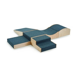 Help crawlers become bipeds! The varied terrain of our Woodscapes blocks provide challenging fun and encouragement to help first-movers build their mobility, coordination and confidence through exploration and play. The i599 Large Platform features edges that are rounded over and sanded smooth for safety. The carpeting material is blue olefin (synthetic fiber, CPSIA compliant) that is renowned for its strength, colorfastness, comfort and its resistance to stain, mildew, abrasion and fading from sunlight.